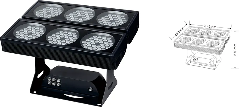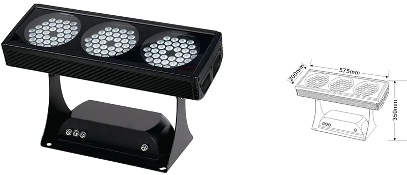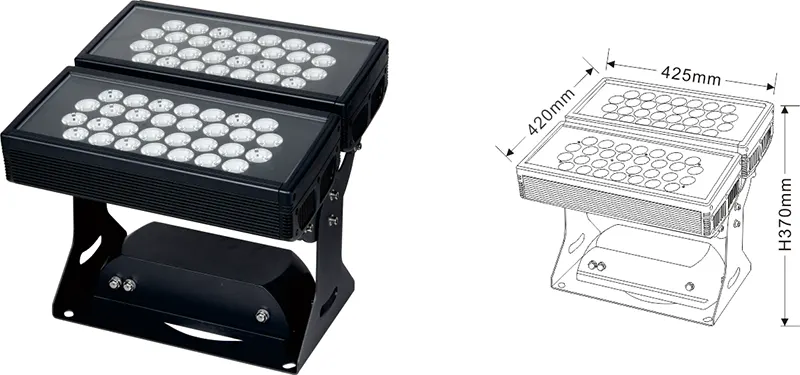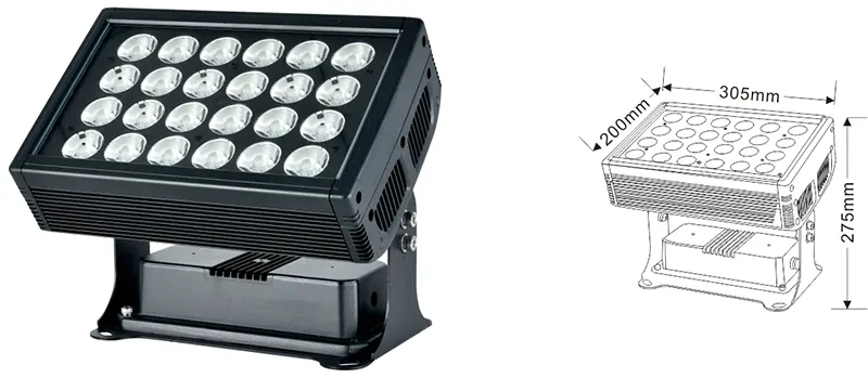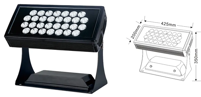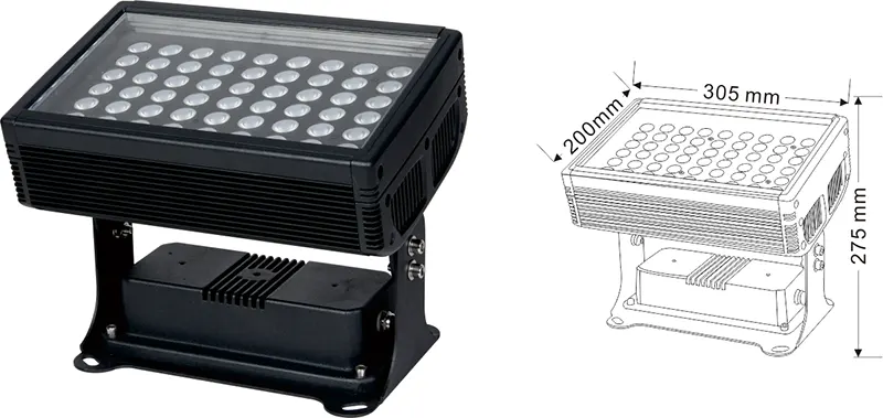 | Projektor LED DMX | Con-TGD05-1 | 200*200*H265 mm | 36*1,5 W. | Materiał: aluminium+szkło temperowane Typ wspornika: regulowany IP: IP67 Temperatura kolorów Opcjonalnie: 3000K/4000K/6500K RGB / DMX512 RGBW / DMX512 Konwencjonalny szary, dostosowywany do dopasowania koloru elewacji budowania |