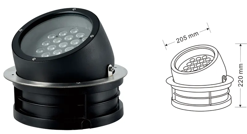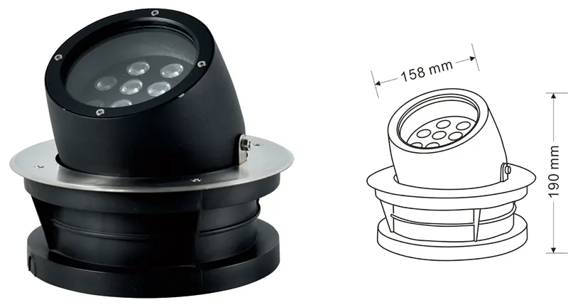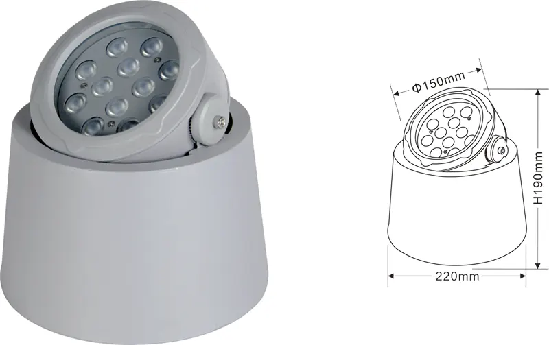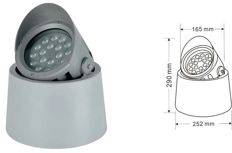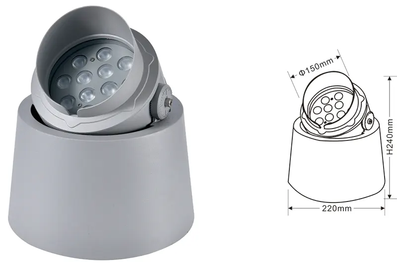 | LED Tree Uplight | Kons-TGD10-1 | Φ150*φ220*H190 mm | 12W | Materiał: aluminium+szkło temperowane Typ wspornika: regulowany IP: IP67 Temperatura kolorów Opcjonalnie: 3000K/4000K/6500K RGB / DMX512 RGBW / DMX512 Konwencjonalny szary, dostosowywany do dopasowania koloru elewacji budowania |